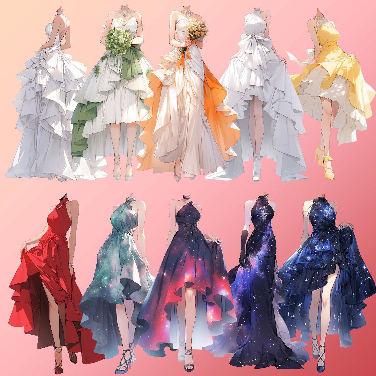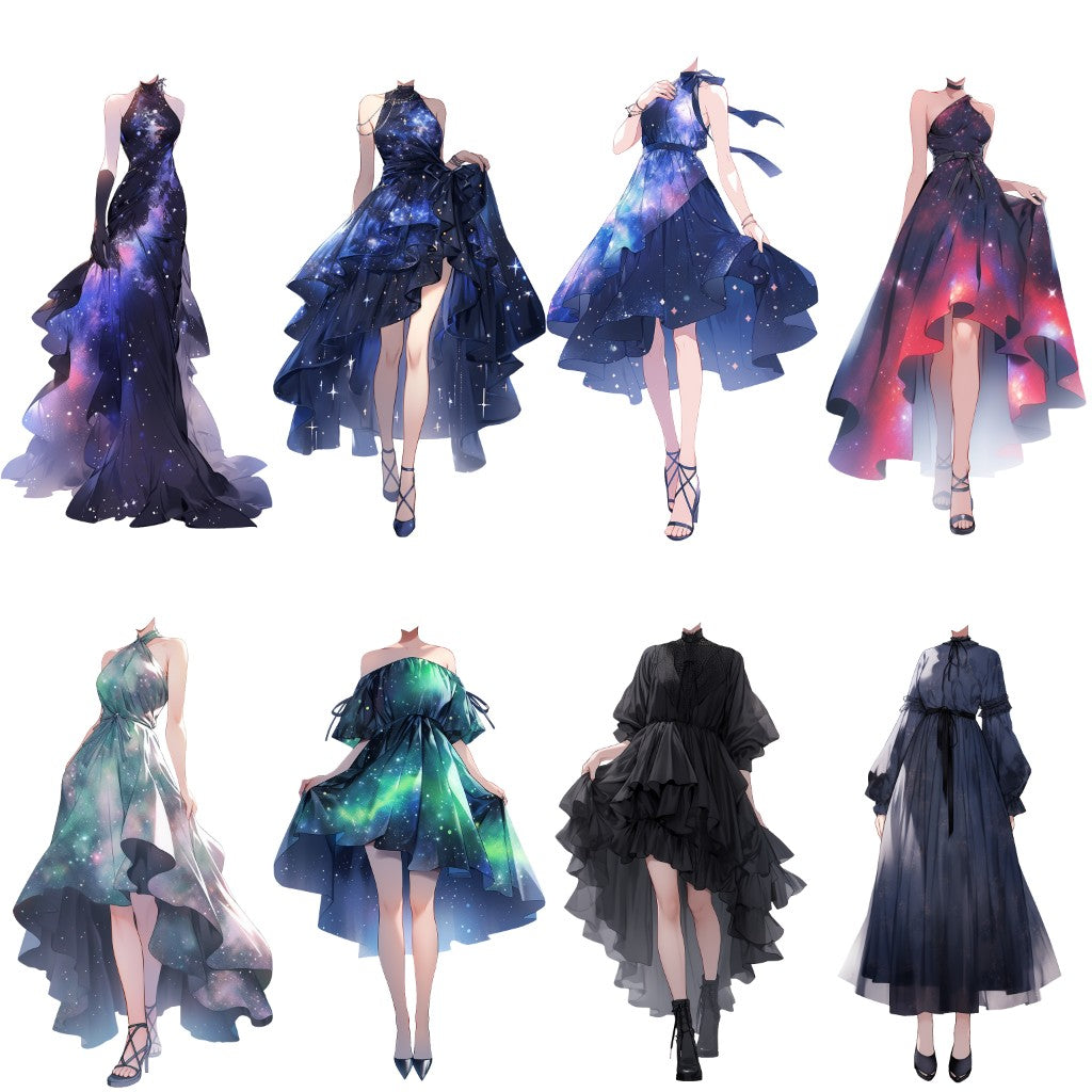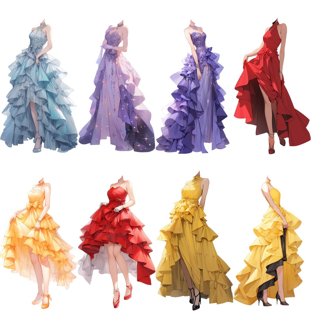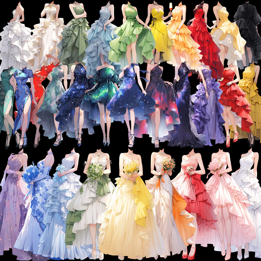50 幅具有透明背景的连衣裙站立插图。