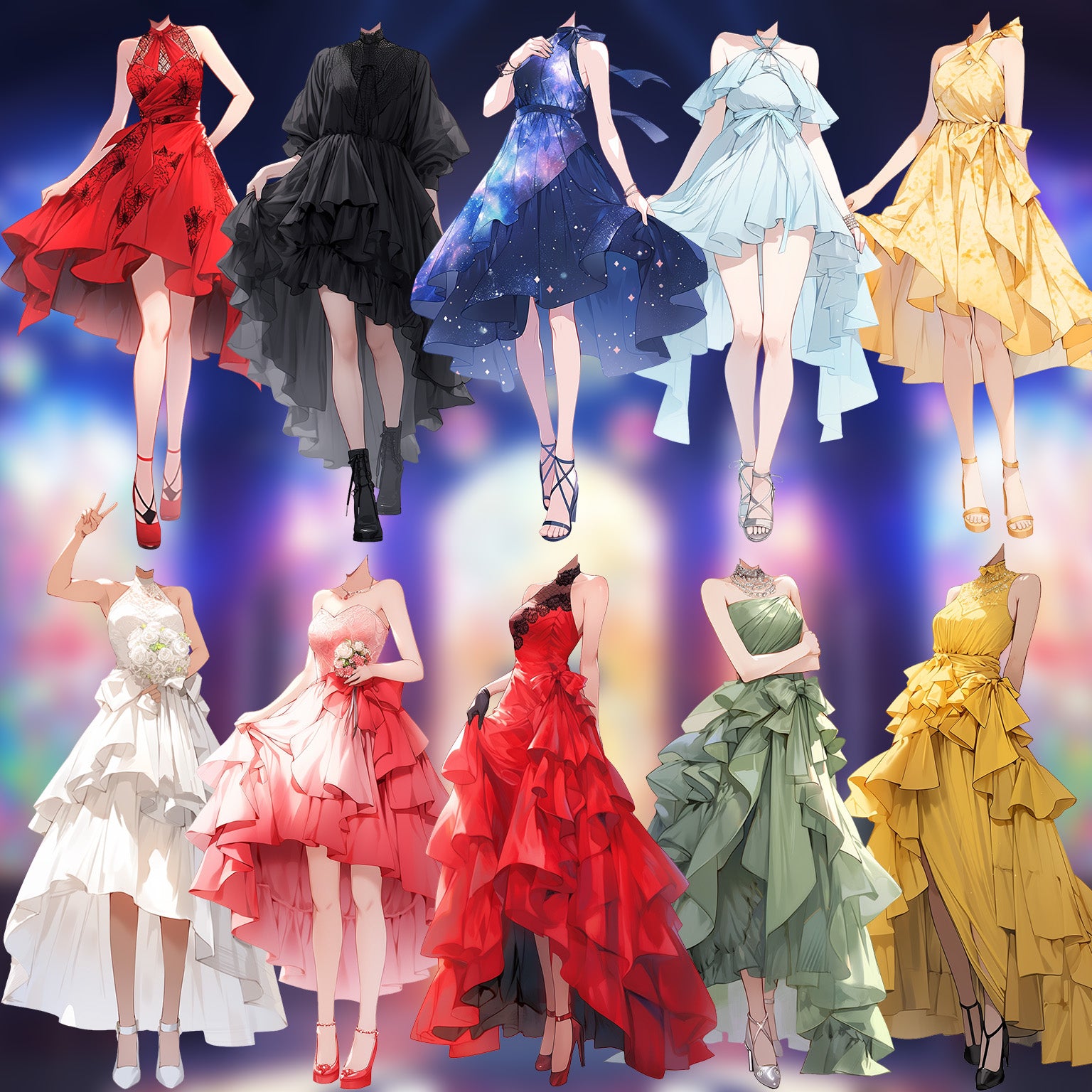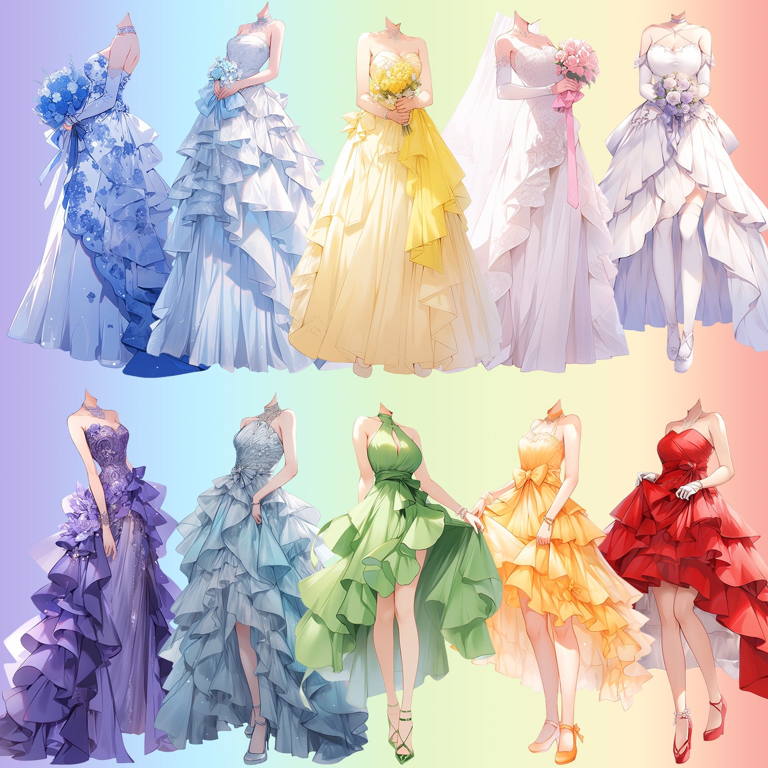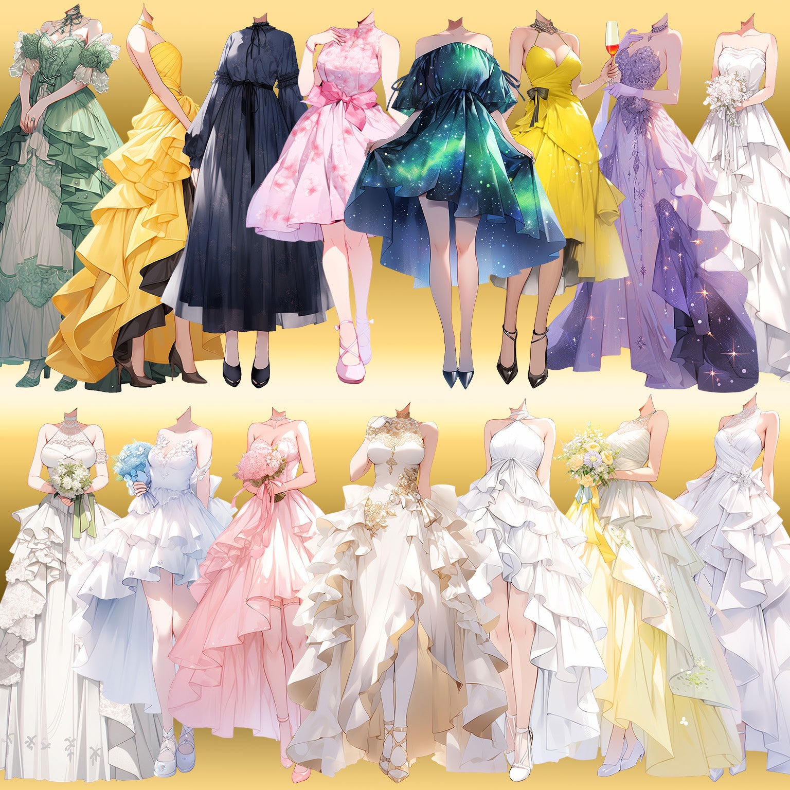 50 幅具有透明背景的连衣裙站立插图。